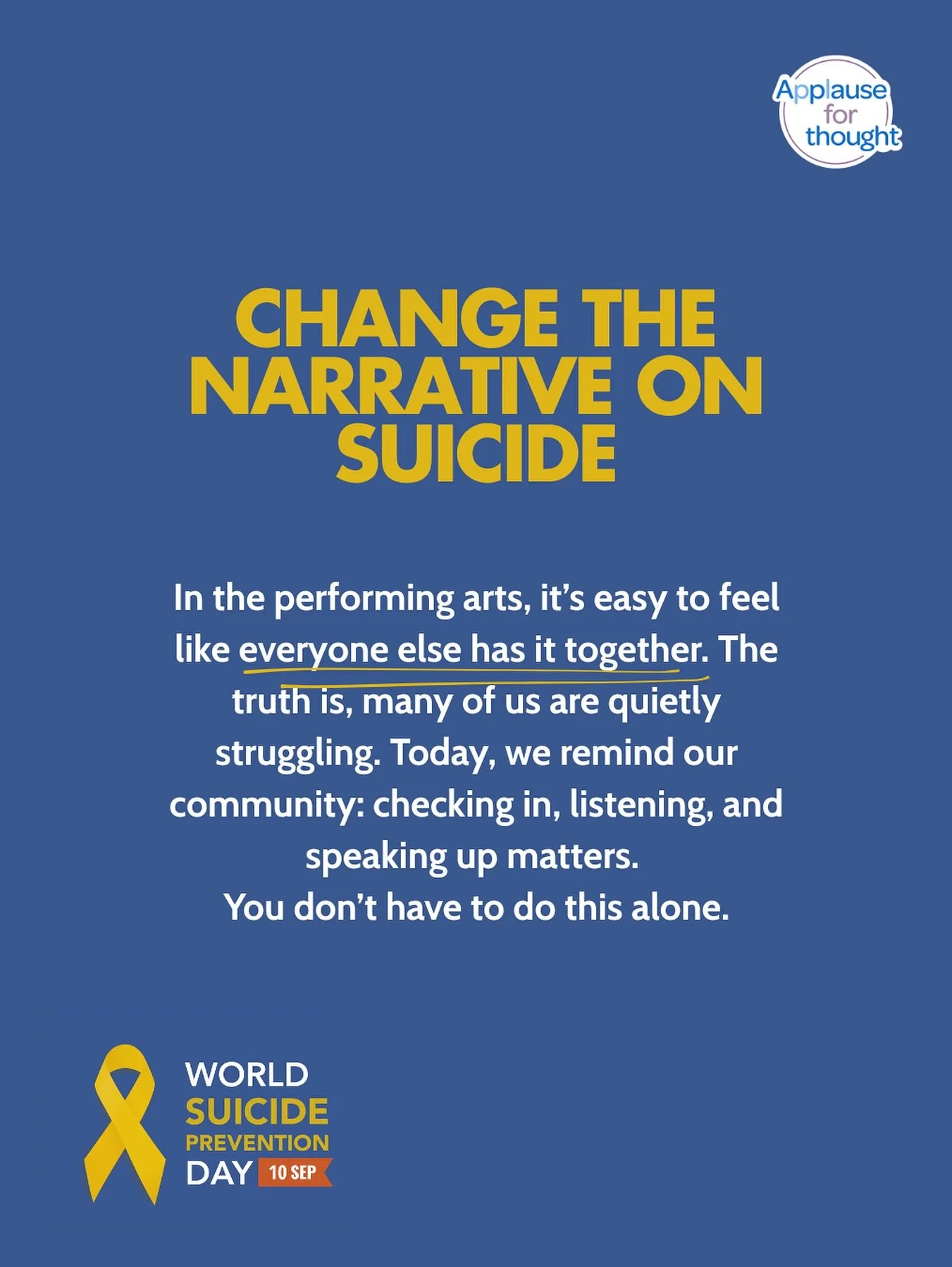Applause for thought is a multi-award winning community interest company that facilitates mental health awareness and support within the performing arts industry. We champion whole-industry care, recognising that creative work thrives when everyone, across all roles and levels, is supported with compassion and consistency