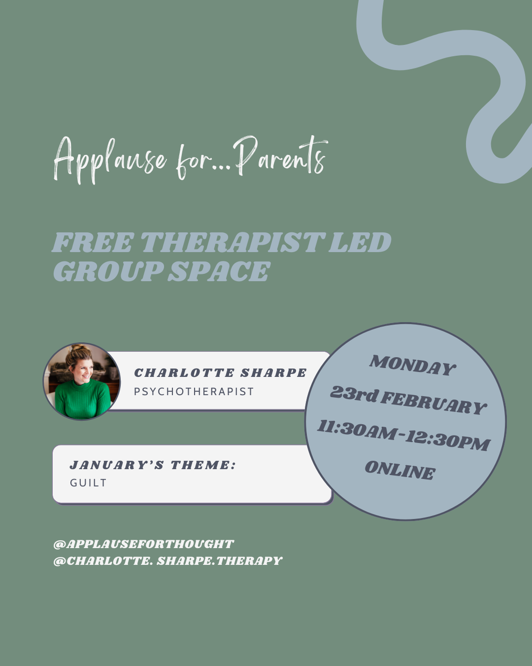 Charlotte Sharpe, a Registered Counsellor/Psychotherapist and mother of two, will lead your session. She offers client-led therapy to address life's challenges, changes, losses, and relationships, with a focus on parental mental health and the mind-body connection.