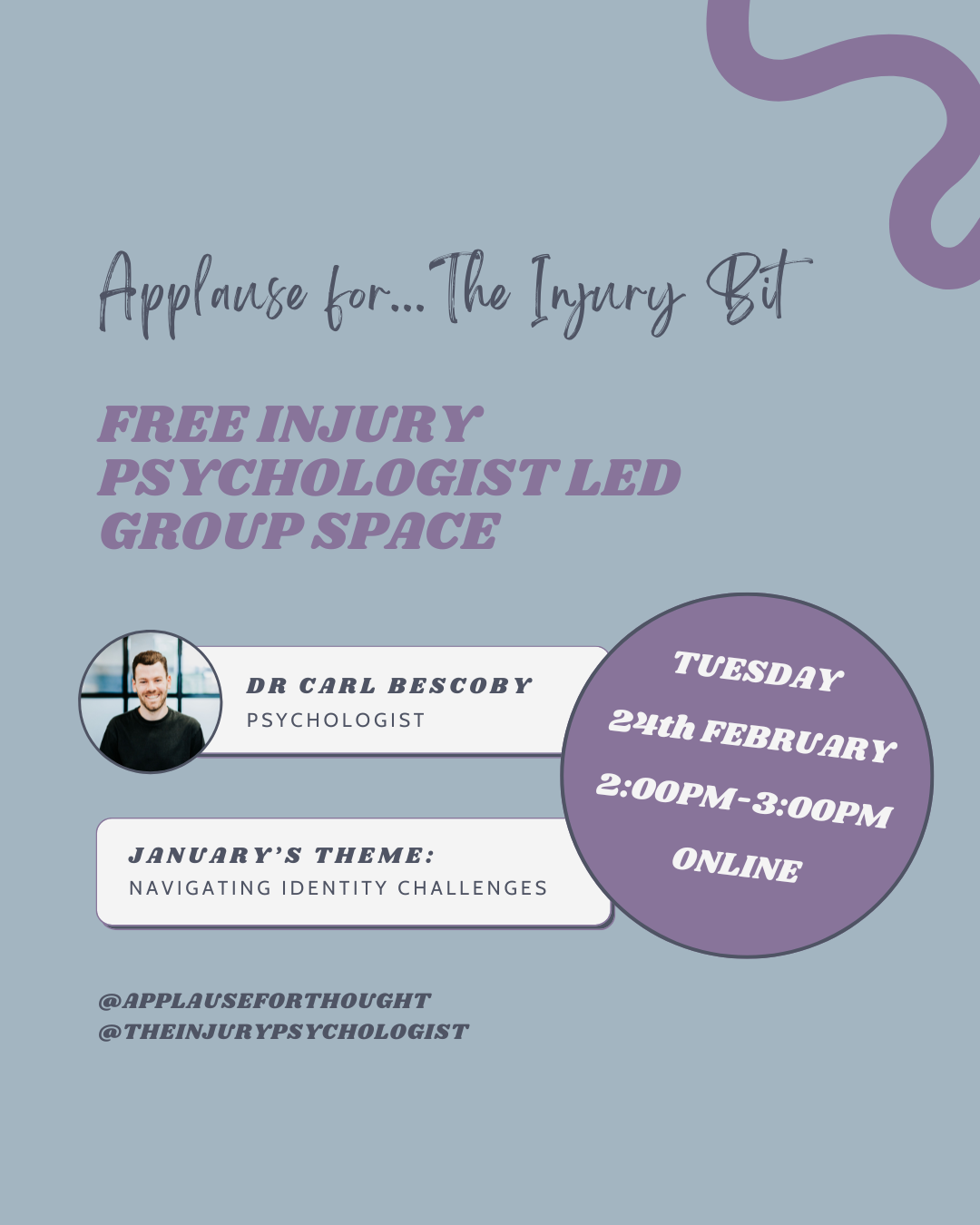 ‘Applause for the Injury Bit’ is a free, community-focused space offering understanding, connection, and practical insight into the psychological & emotional challenges that can come with injury recovery.