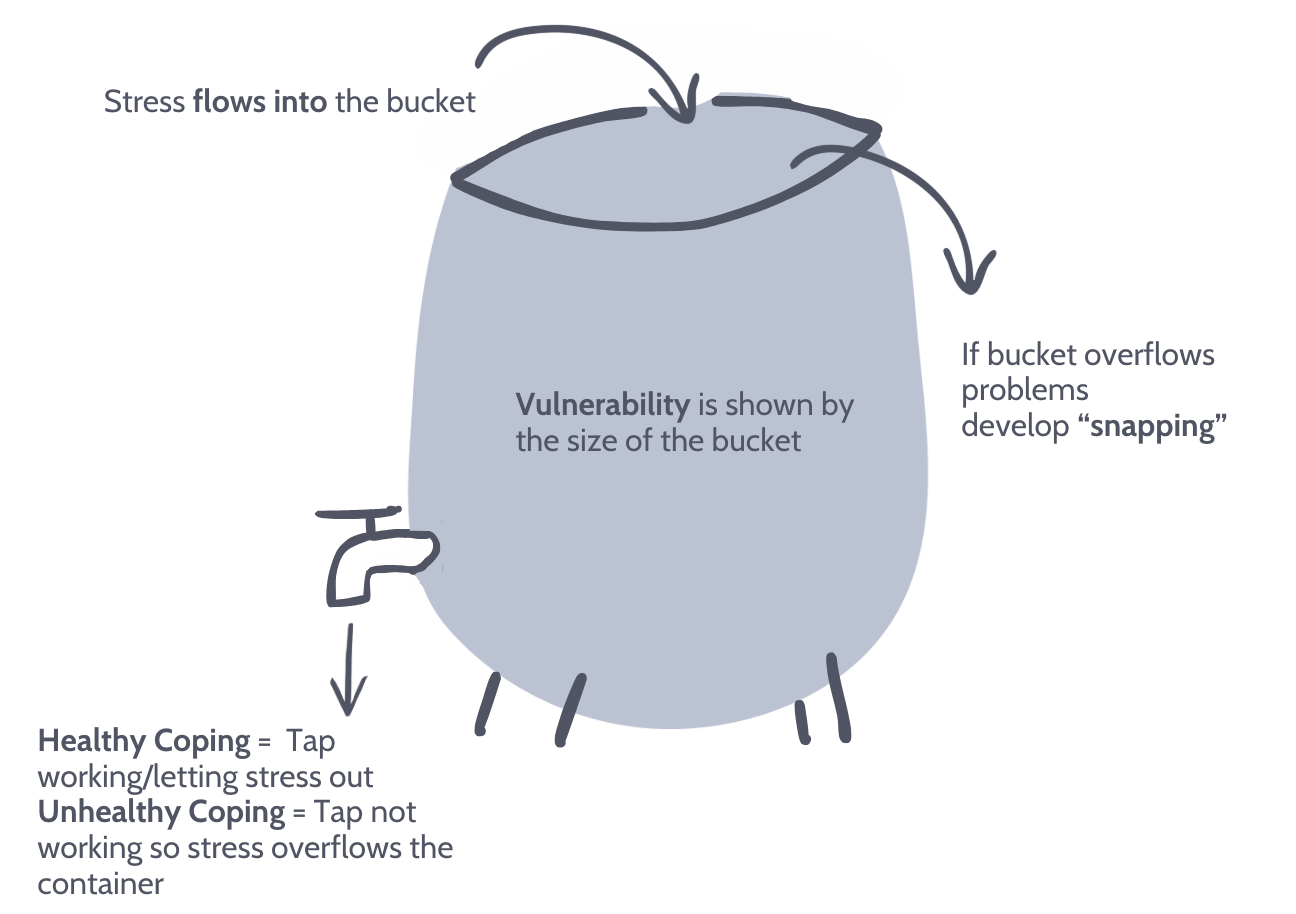 The Stress Container is a visual tool that helps you understand how stress builds up and how to manage it. Stressors fill the container, and without release, it can overflow, leading to overwhelm. Coping strategies act like taps, helping to relieve pressure and maintain balance like the below: